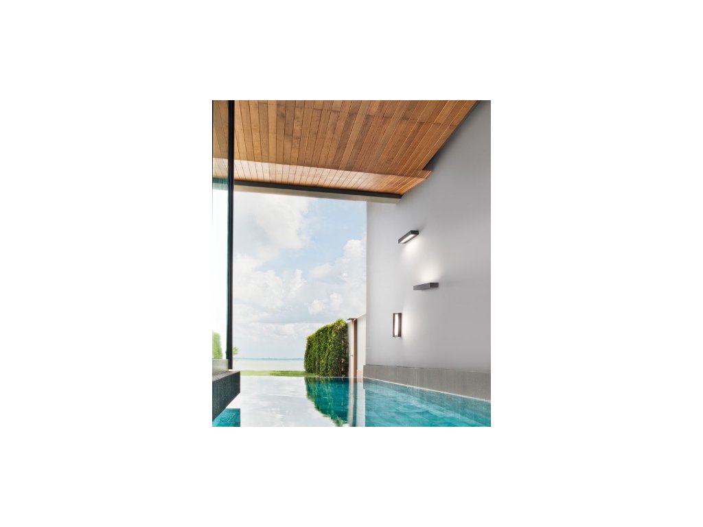 Vonkajšie nástenné LED svietidlo FUNGO v tvare obdĺžnika v hliníkovom prevedení. Svieti nepriamo jedným smerom po stene, a tým pádom neoslňuje. Dostupné v 2 farebných variantoch.
