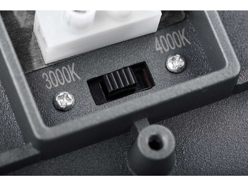 Svietidlo je vybavené zabudovaným prepínačom (CCT switch) farby svetla 3000K a 4000K - pri inštalácii jednoducho nastavíte požadovanú farbu svetla prepínačom.
