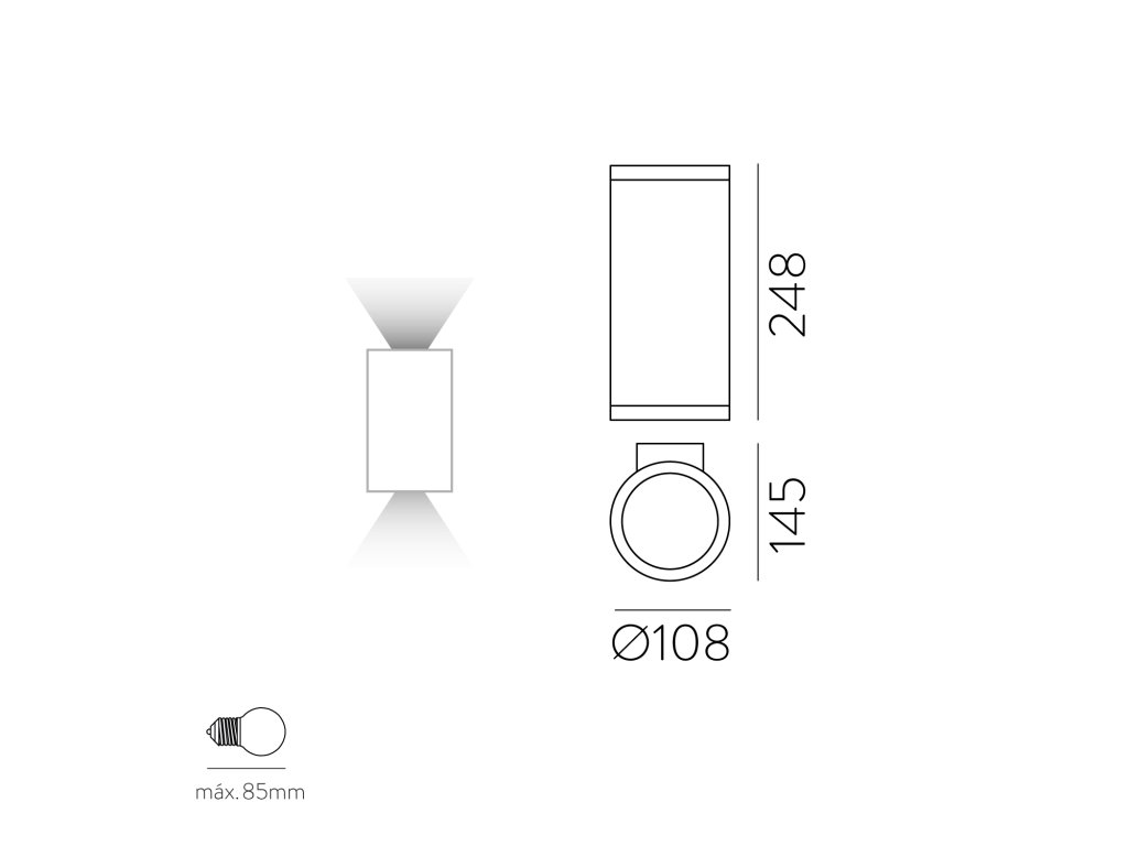 Nástenné svietidlo Nori sa vyznačuje valcovým tvarom z hliníka v antracitovej farbe a skleneným difúzorom s dvojitým vyžarovaním svetla hore a dole.
