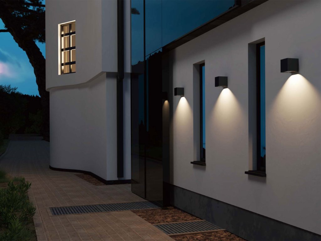 - vonkajšie nástenné LED svietidlo TOMY v tvare kocky, so spodným