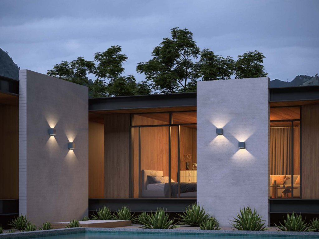 - vonkajšie nástenné LED svietidlo TOMY v tvare kocky, so spodným