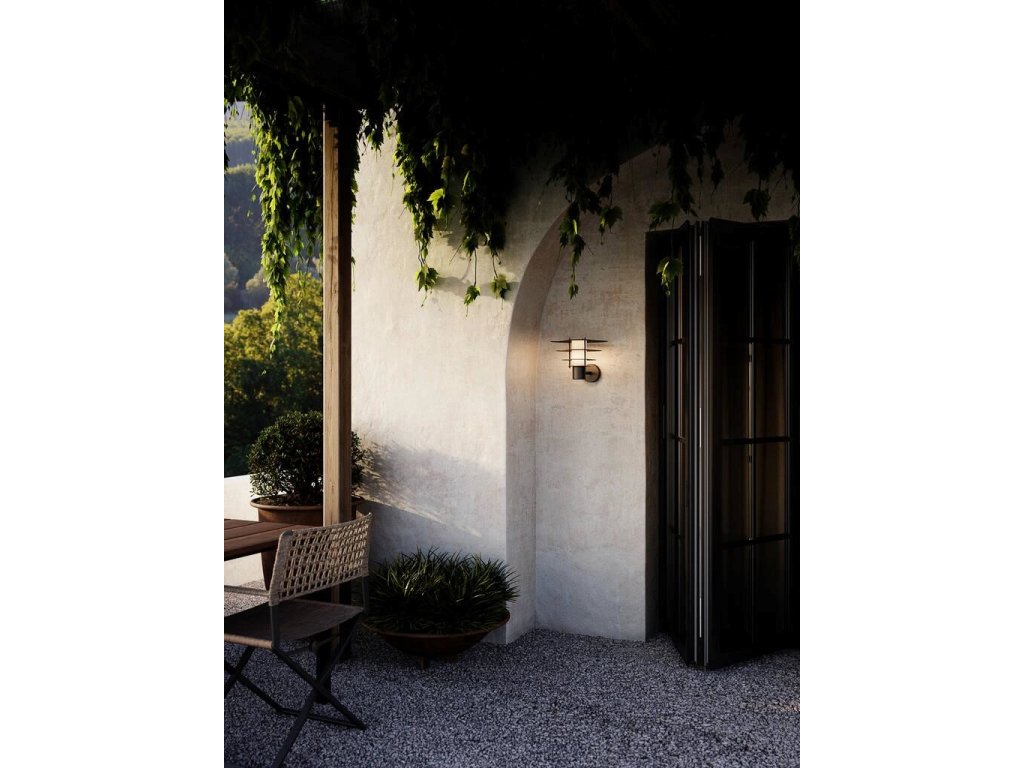 Nástenné svietidlo v klasickom severskom dizajne, ktoré ozdobí každý kúsok Vášho exteriéru, to je Bastia 24 od Nordluxu. Bude ideálna k príjazdovej ceste, ku vchodu do domu či k altánku. Kombinácia horizontálnych línií a difúzora spôsobuje mäkké neoslňujúce svetlo, ktoré zaistí funkčné využitie svetla. Môžete si vybrať z dvoch variantov, a to čiernej alebo galvanizovanej ocele. Tienidlo sa skladá zo štyroch kotúčov, ktoré sa smerom nahor zväčšujú. Svetelný zdroj je umiestnený za difúznou plastovou ochranou. Svetlo je užitočné pre orientáciu v dome alebo na verande a skvele sa hodí aj k štruktúrovaným stenám, napríklad dreveným alebo klinkerovým. Je vysoko odolné, s vyšším krytím IP54. Zaujímavosťou je iba 1 viditeľná skrutka.