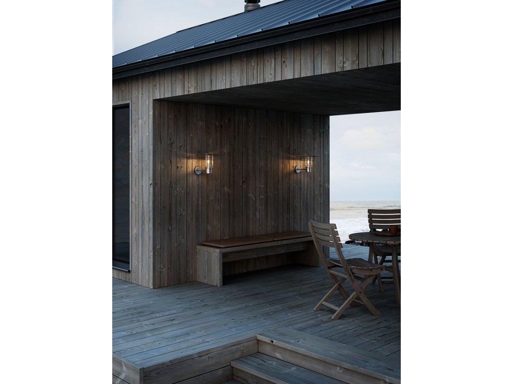 Nástenné svietidlo v klasickom severskom dizajne, ktoré ozdobí každý kúsok Vášho exteriéru, to je Bastia 35 od Nordluxu. Bude ideálna k príjazdovej ceste, ku vchodu do domu či k altánku. Kombinácia horizontálnych línií a difúzora spôsobuje mäkké neoslňujúce svetlo, ktoré zaistí funkčné využitie svetla. Môžete si vybrať z dvoch variantov, a to čiernej alebo galvanizovanej ocele. Tienidlo sa skladá zo štyroch kotúčov, ktoré sa smerom nahor zväčšujú. Svetelný zdroj je umiestnený za difúznou plastovou ochranou. Svetlo je užitočné pre orientáciu v dome alebo na verande a skvele sa hodí aj k štruktúrovaným stenám, napríklad dreveným alebo klinkerovým. Je vysoko odolné, s vyšším krytím IP54. Zaujímavosťou je iba 1 viditeľná skrutka.