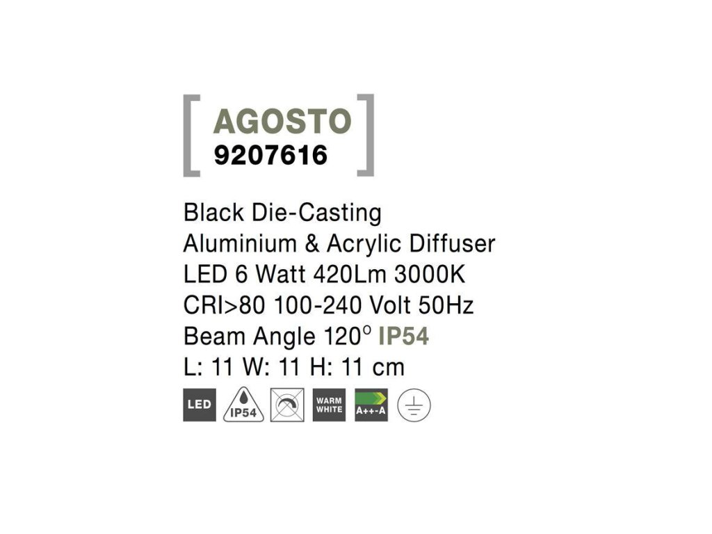 Vonkajšie nástenné svietidlo AGOSTO čierny hliník a akrylový difúzor LED 6W 3000K 120st. IP54