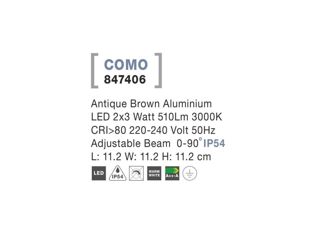 Vonkajšie nástenné svietidlo COMO antický hnedý hliník LED 2x3W 3000K nastaviteľný uhol 0-90st. IP54