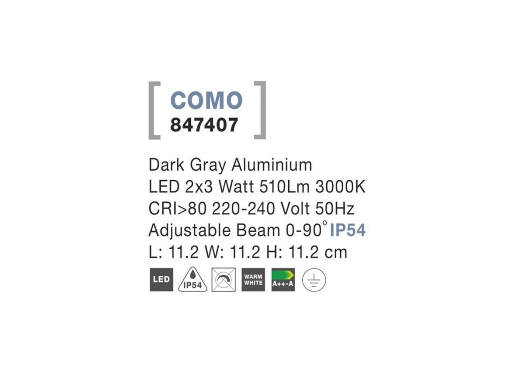Vonkajšie nástenné svietidlo COMO tmavo šedý hliník LED 2x3W 3000K 3000K nastaviteľný uhol 0-90st. IP54