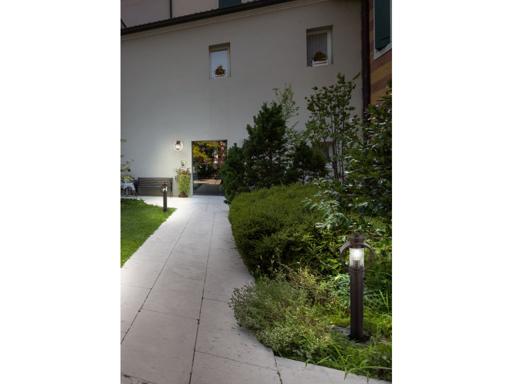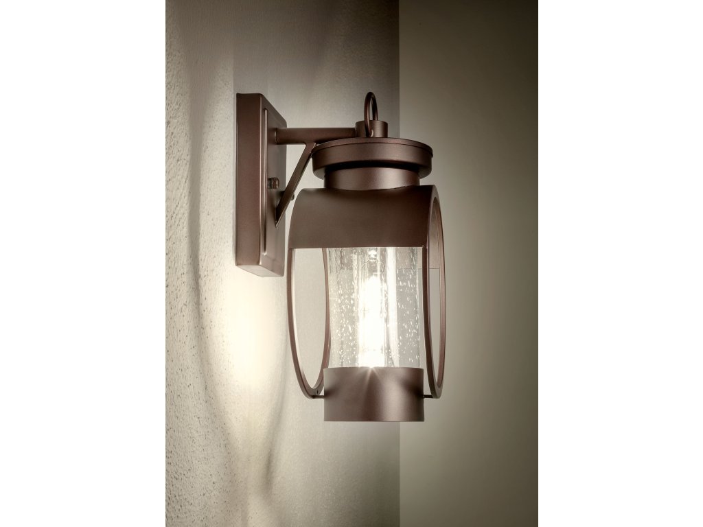 Vonkajšie nástenné svietidlo krásne osvetlí vaše vonkajšie priestory. Svojím jedinečným vzhľadom ihneď zaujme. Svietidlo je z kovu v tmavo hnedej farbe, tienidlo je vyrobené zo skla so sklenenými bublinami. Stupeň krytia je IP33, do svietidla používajte LED zdroj s päticou E27 - nie je súčasťou balenia.