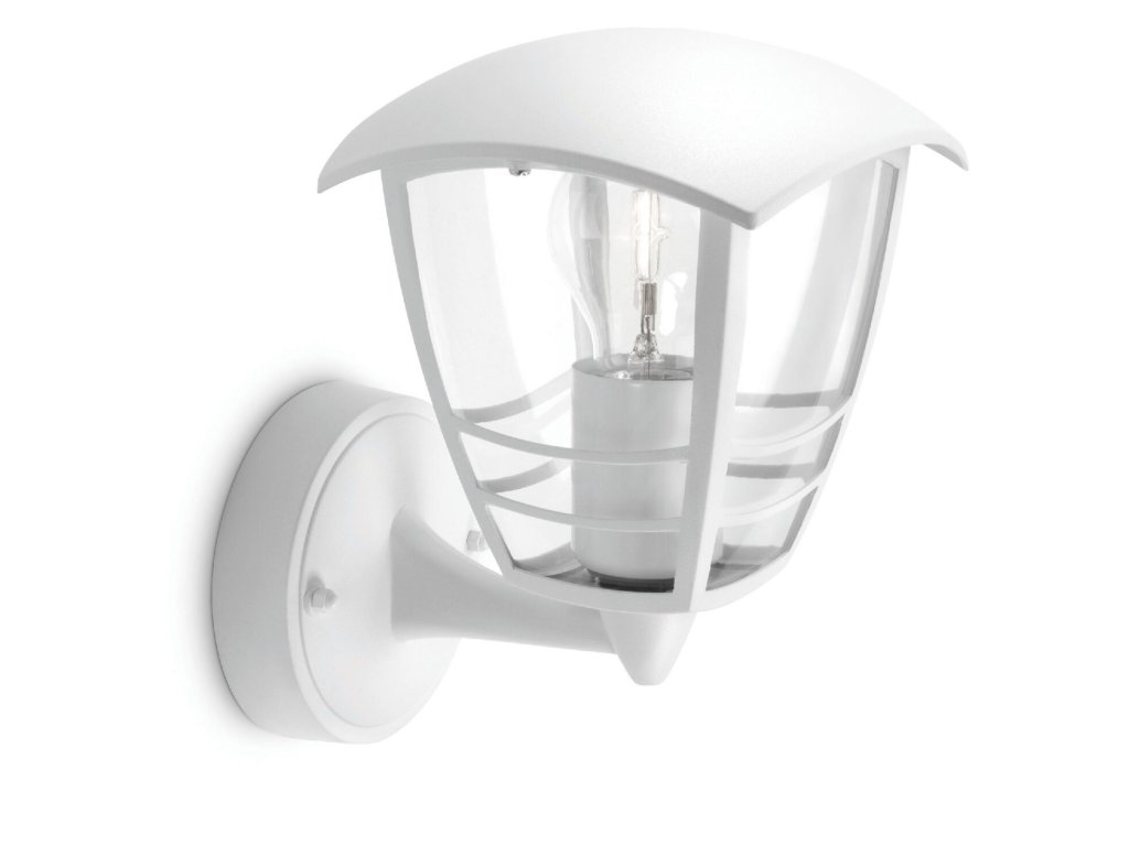 Vonkajšie nástenné svietidlo Creek vyrobené z hliníka s čiernou alebo bielou povrchovou úpravou. Svietidlo má vintage štýl, pripomínajúci lampáš. Vďaka vysokému stupňu krytia IP44 je vhodné ako vonkajšie osvetlenie, svietidlo je vhodné na osvetlenie fasád, balkónov alebo altánku. Difúzor z číreho plastu s päticou E27 pre žiarovku s maximálnym príkonom 1 x 60 W (zdroj nie je súčasťou balenia). Celkové rozmery svietidlá robia 23,5 x 17,5 x 20 cm.