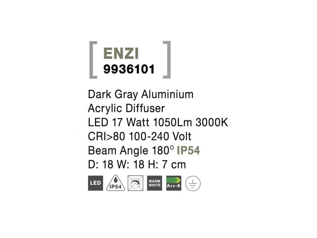 Vonkajšie nástenné svietidlo ENZI tmavo šedý hliník akrylový difúzor LED 15W 3000K 180st. IP54
