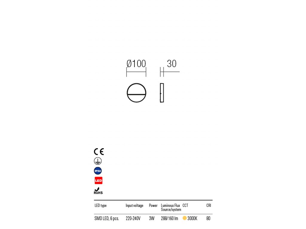 Vonkajšie nástenné svietidlo vhodné ako orientačné osvetlenie na fasádach a stenách okolo domov, chodníkov, altánkov alebo garáží. Dostatočne osvetlí plochu pod sebou a zaručí tak bezpečnosť na schodisku alebo okolo chodníka. SMD LED zdroje sú ukryté v hliníkovom tele. Sklenený kryt v plochom tele smeruje prúd svetla iba dole a neoslňuje tak okolie. Svietidlo sa montuje priamo na fasádu a nepotrebuje vlastnú inštalačnú škatuľu. LED zdroje aj transformátor sú súčasťou produktu a nedajú sa vymeniť.Dodatočné parametre