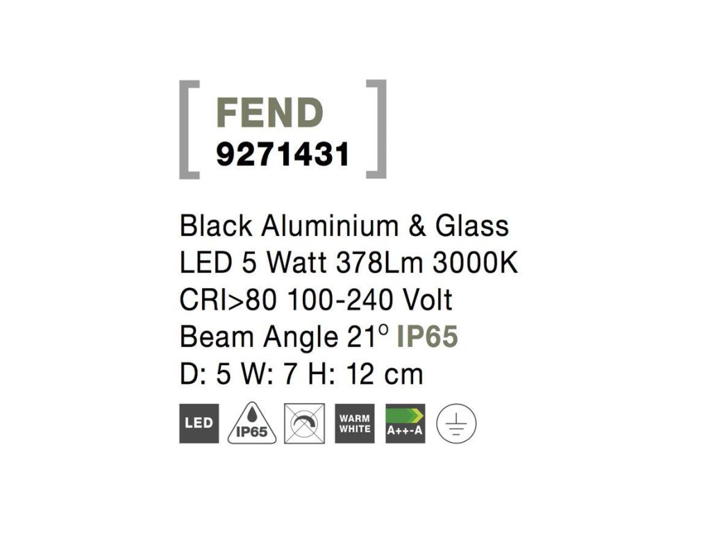 Vonkajšie nástenné svietidlo FEND čierny hliník a sklo LED 5W 3000K 21st. IP65