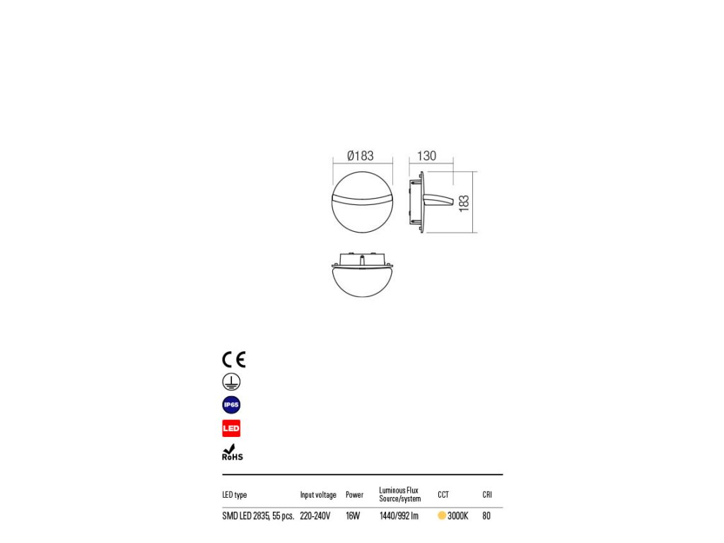 Vonkajšie nástenné svietidlo má hliníkovú konštrukciu, ktorá je lakovaná v pieskovo bielej alebo tmavo šedej farbe a difúzor z matného polykarbonátu, pod ktorými je zabudovaný LED zdroj s farbou svetla 3000K. Svietidlo zaujme možnosťou nastavenia, tienidlo si viete natočiť do smeru, ktorý vám najviac vyhovuje. Exteriérové vonkajšie svietidlo Gimbal má ochranné krytie IP65, napájanie 220-240V, CRI80.Dodatočné parametre