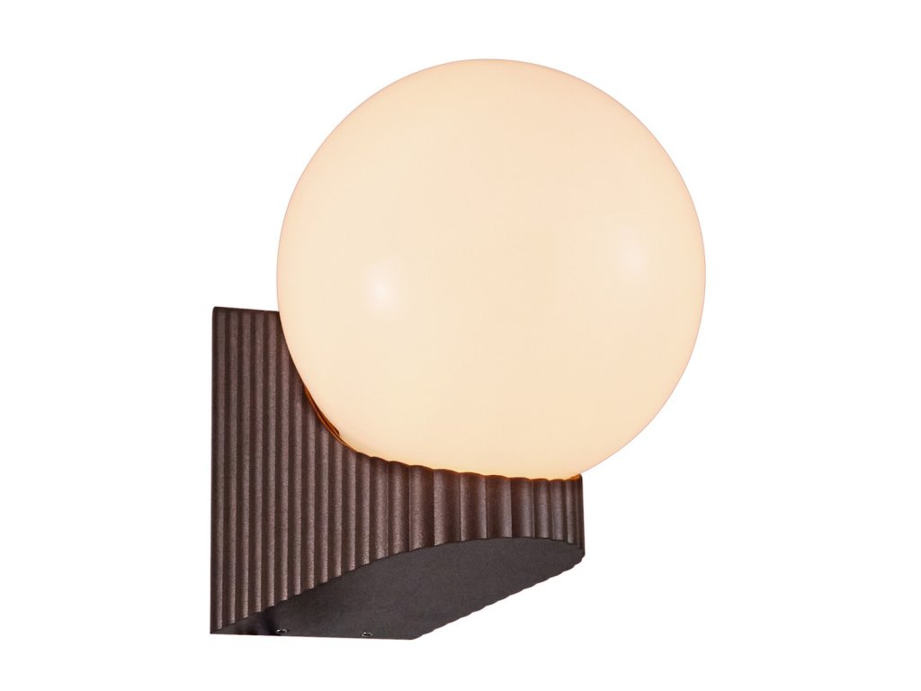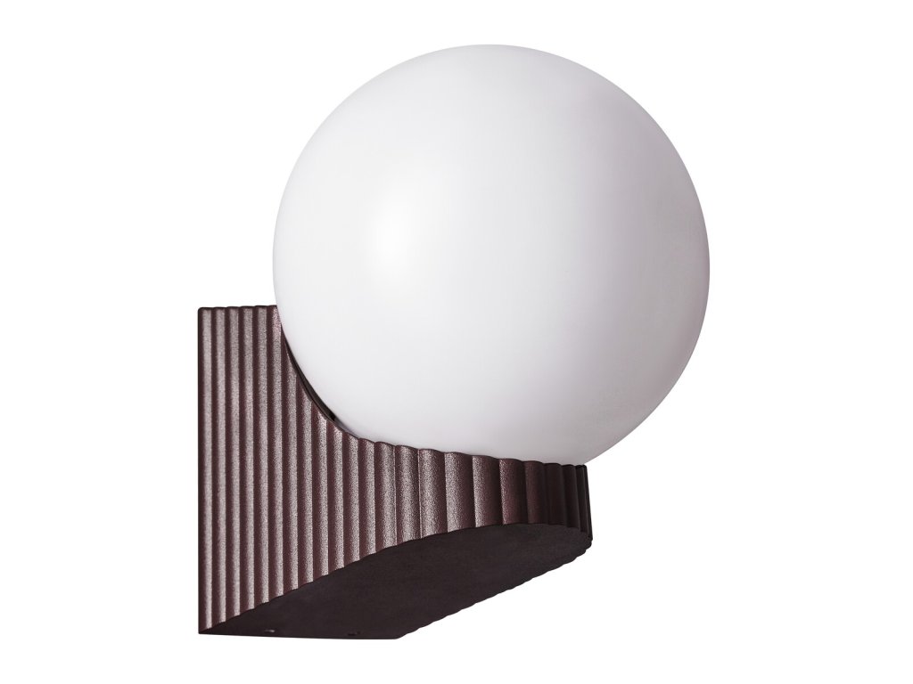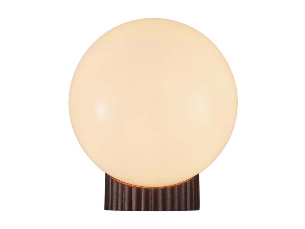 Základňa svietidla je hnedá kov s elegantným zvlneným povrchom.
