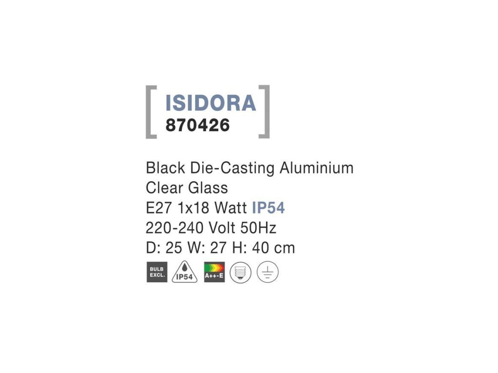 Vonkajšie nástenné svietidlo ISIDORA, E27 1x12W IP54