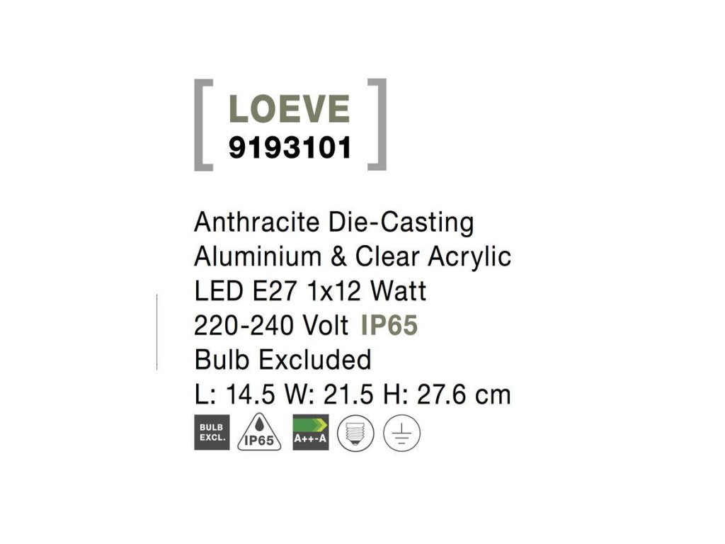 Vonkajšie nástenné svietidlo LOEVE antracitový hliník a číry akryl E27 1x12W IP65