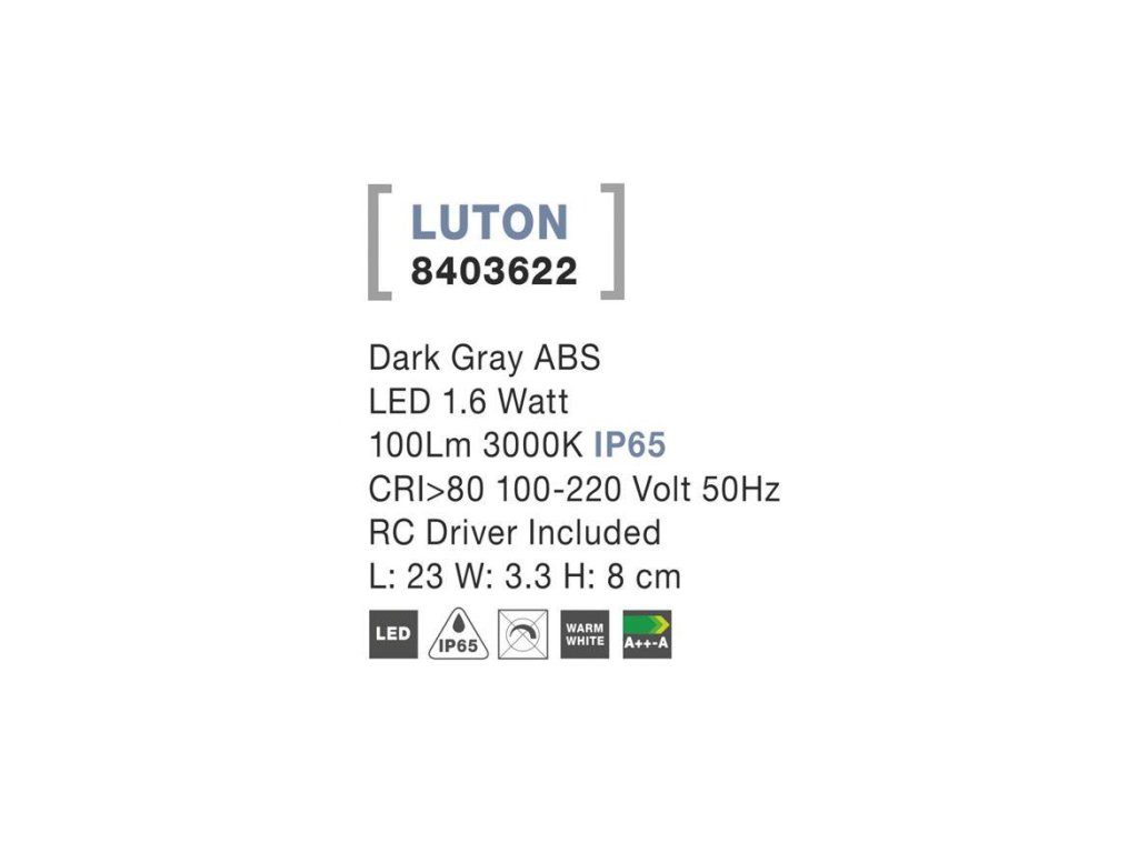 Vonkajšie nástenné svietidlo LUTON tmavo šedý ABS LED 1.6W 3000K IP65, vr. driveru