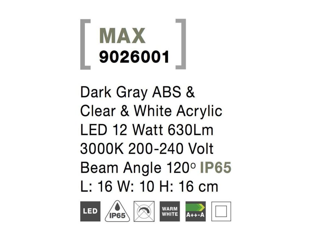 Vonkajšie nástenné svietidlo MAX tmavo šedé, LED 12W 3000K, 120st. IP65