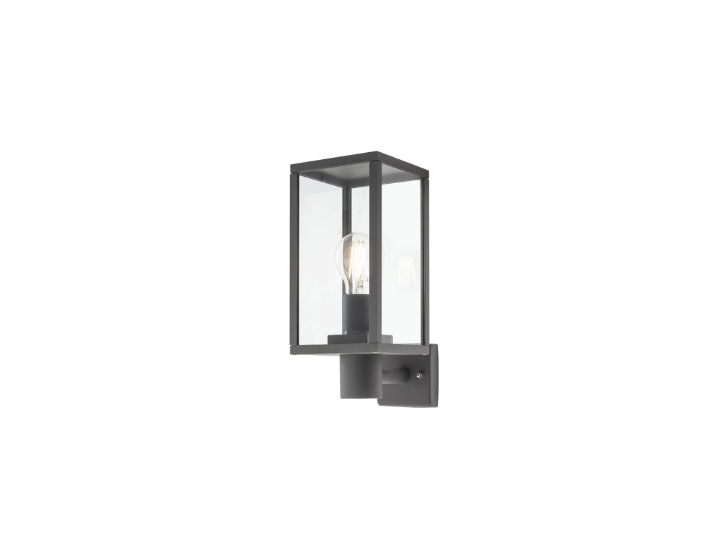Vonkajšie nástenné svietidlo, telo z tlakovo liateho hliníka, elektrostaticky lakované v matnej čiernej farbe, priehľadné sklenené difúzory. Žiarovka E27 nie je súčasťou balenia.