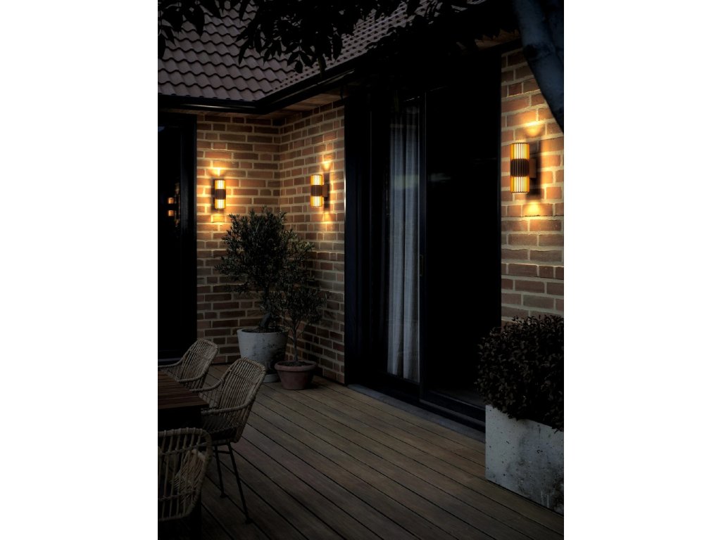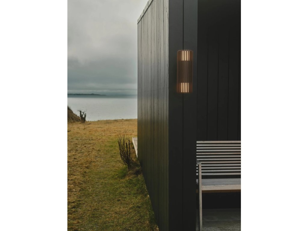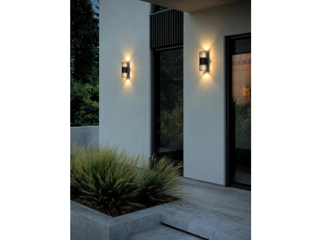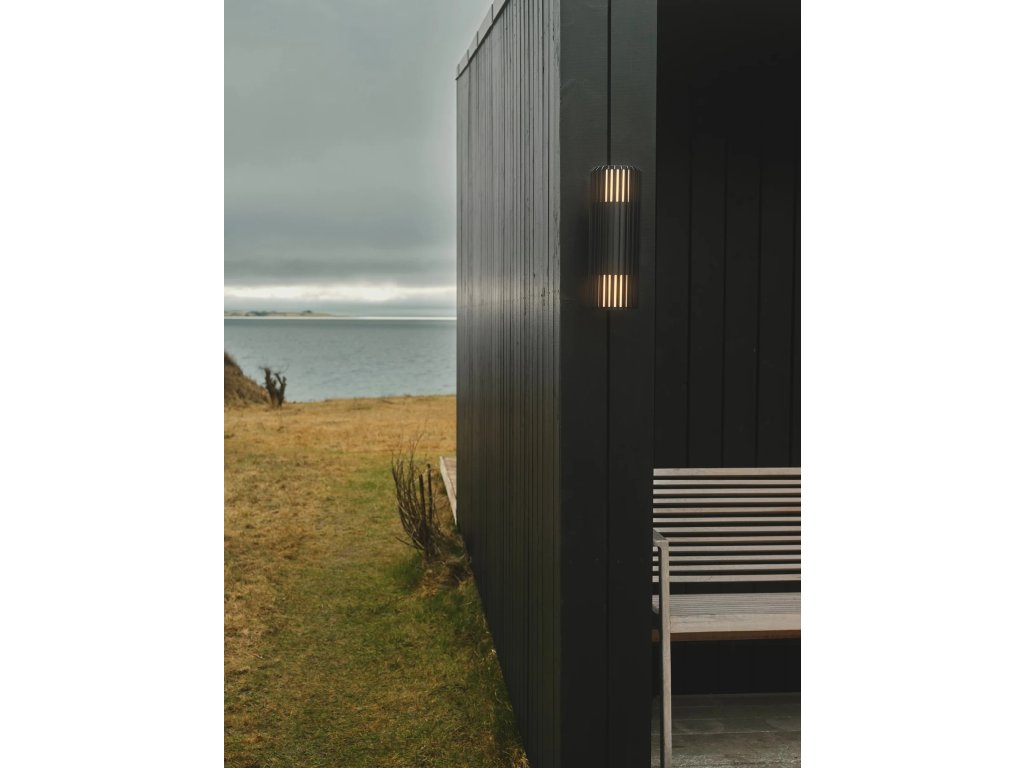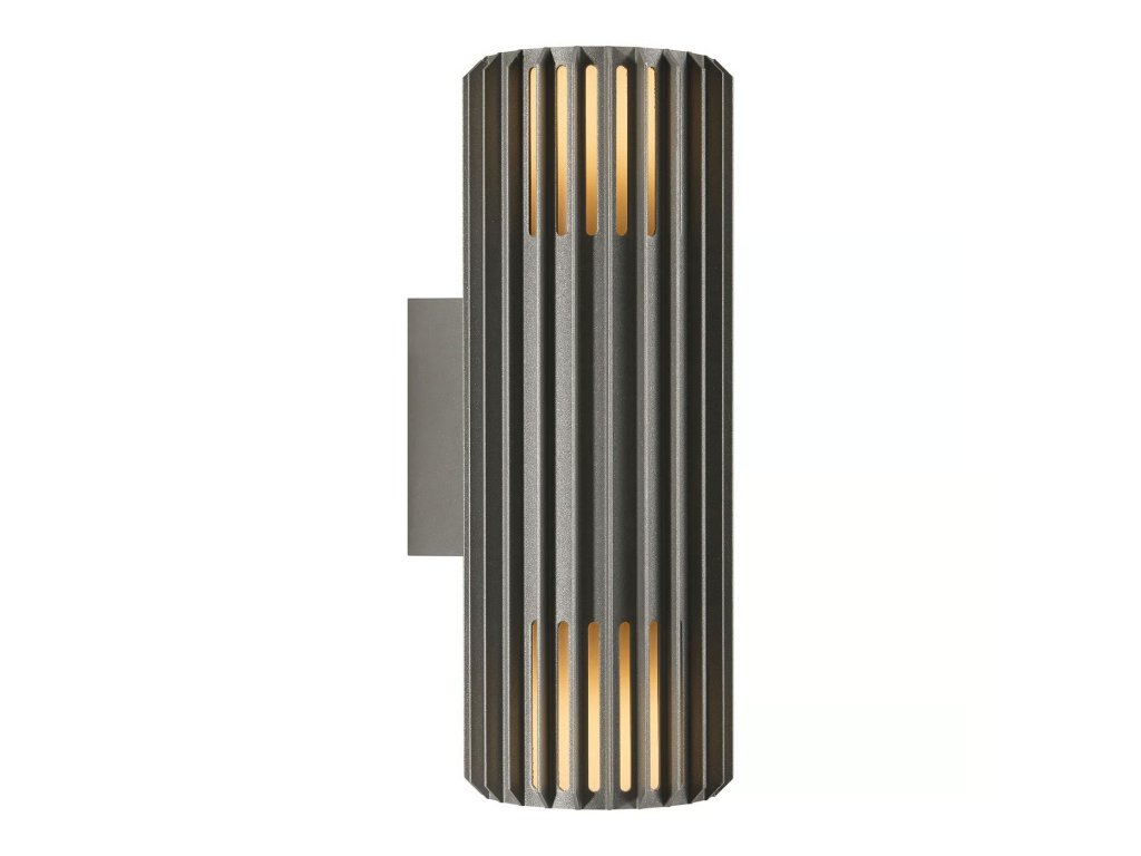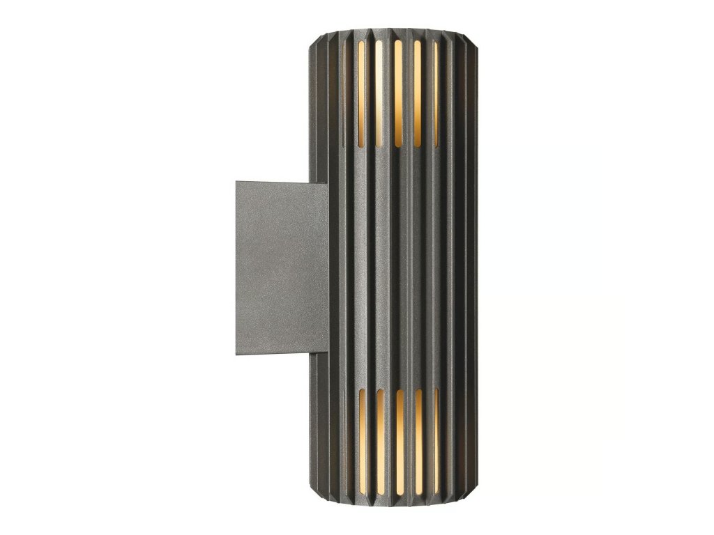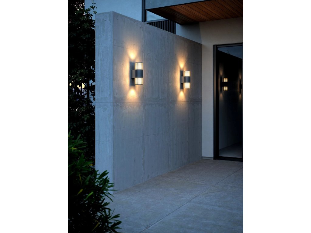 Vonkajšie nástenné svetlo Aludra Double od Nordluxu v modernom minimalistickom dizajne. Vďaka špecifickému tvaru vytvára v okolí hru svetla a tieňa. Vyrobené z odolného materiálu, dostupné v troch farebných prevedeniach.