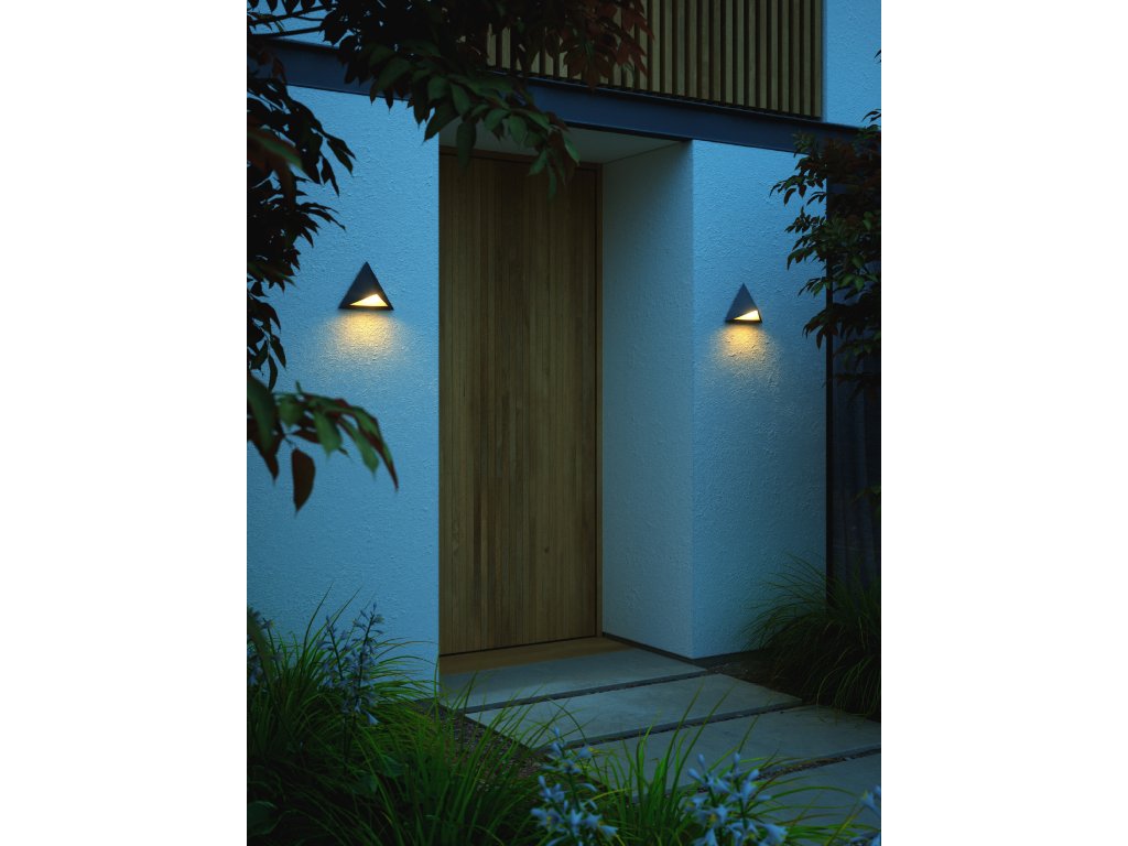 Vonkajšie nástenné svietidlo Konit od Nordluxu v jedinečnom trojuholníkovom designe príjemne rozptyľuje svetlo smerom dole. Dostupné v čiernom prevedení.Dodatočné parametre