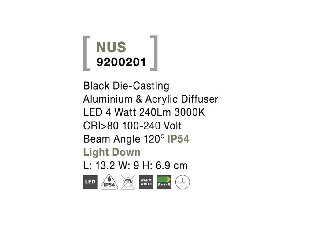 Vonkajšie nástenné svietidlo NUS, LED 4W 3000K 120st. IP54 svetlo dole