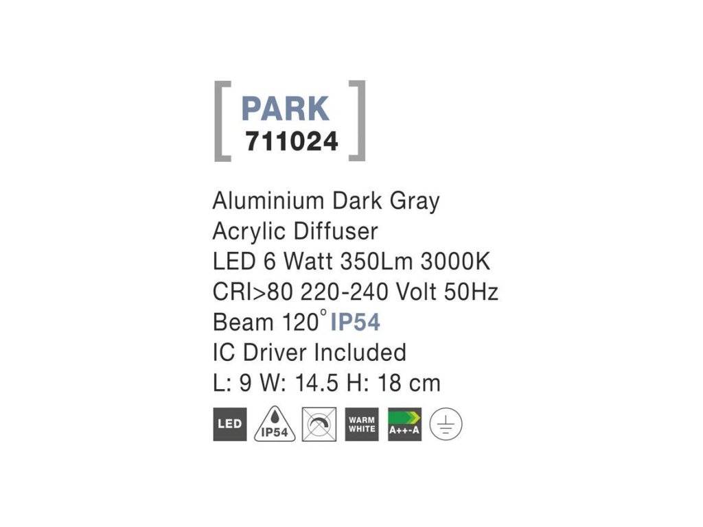Vonkajšie nástenné svietidlo PARK, LED 6W 3000K 120st. IP54 AC vr. driveru