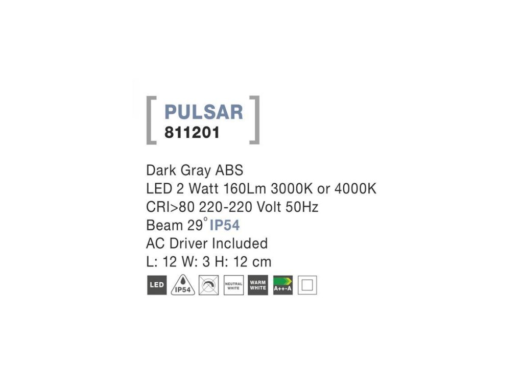 Vonkajšie nástenné svietidlo PULSAR, LED 2W 3000K 29st. IP54