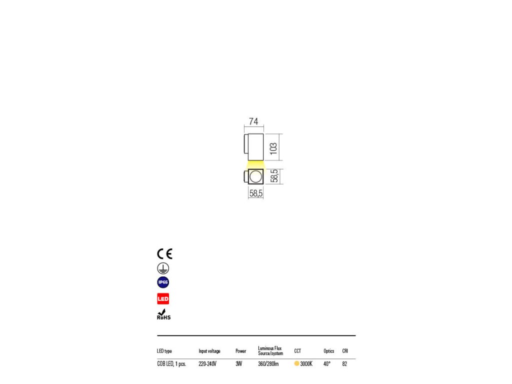 Vonkajšie nástenné svietidlo vybavené LED diódami COB s konštrukciou z lakovaného hliníka a skleneným priehľadným difúzorom. Svietidlo sa stane kratickým vonkajším prvkom, ale aj krásnou dekoráciou.Dodatočné parametre