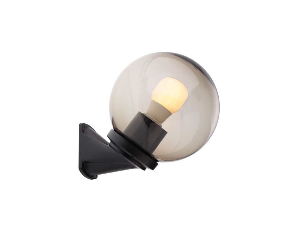 Vonkajšie nástenné svietidlo, čierny polykarbonát, guľový difúzor z opálového alebo dymového akrylu Ø 250 mm.