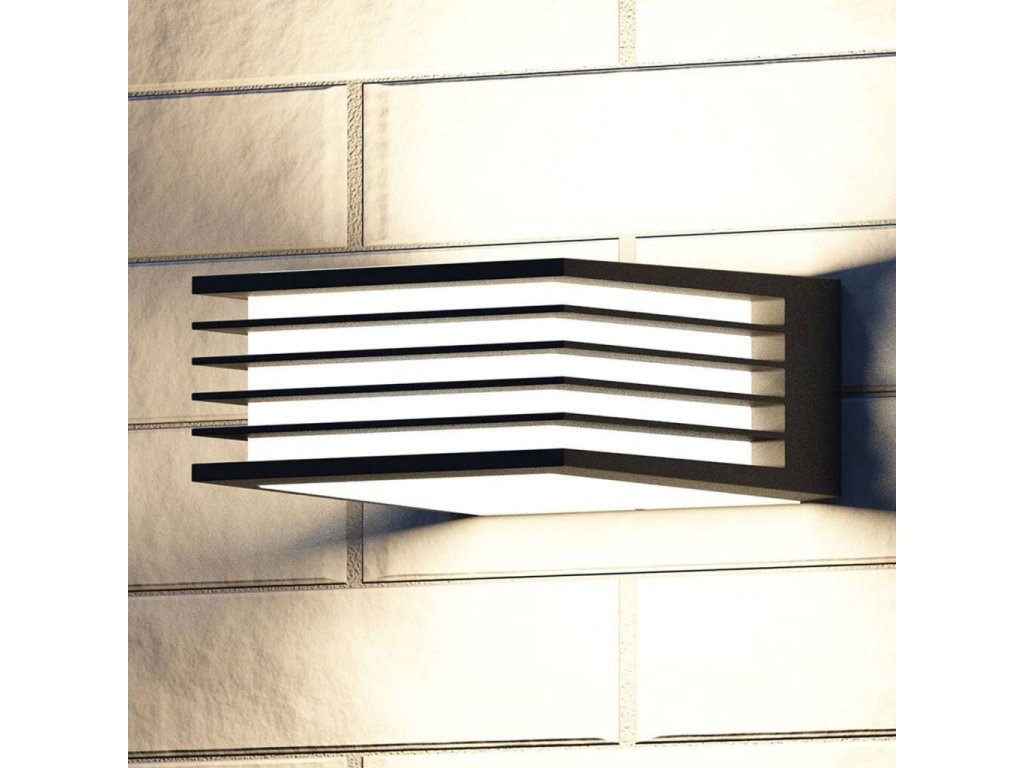 Vonkajšie nástenné svietidlo Shades vyrobené z hliníka s antracitovou alebo šedou povrchovou úpravou. Svietidlo má jednoduchý moderný design. Vďaka vysokému stupňu krytia IP44 je vhodné ako vonkajšie osvetlenie, svietidlo je vhodné pre osvetlenie exteriéru Vášho domu ako terasy, altánku alebo vchodu. Difúzor z mliečneho plastu s päticou E27, s maximálnym príkonom 42W. Celkové rozmery 8,2 x 17,1 x 17 cm. Svetlo vyžaruje hore, dole aj medzi mriežkami.