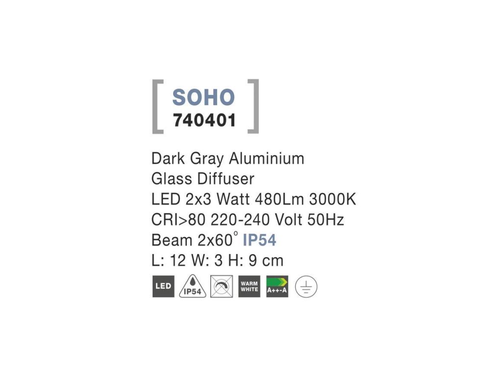 Vonkajšie nástenné svietidlo SOHO, LED 2x3W 3000K 2x60st. IP54