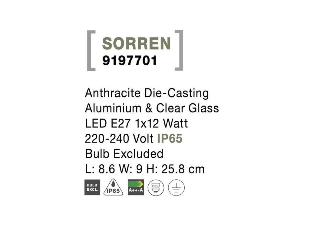 Vonkajšie nástenné svietidlo SORREN, E27 1x12W IP65