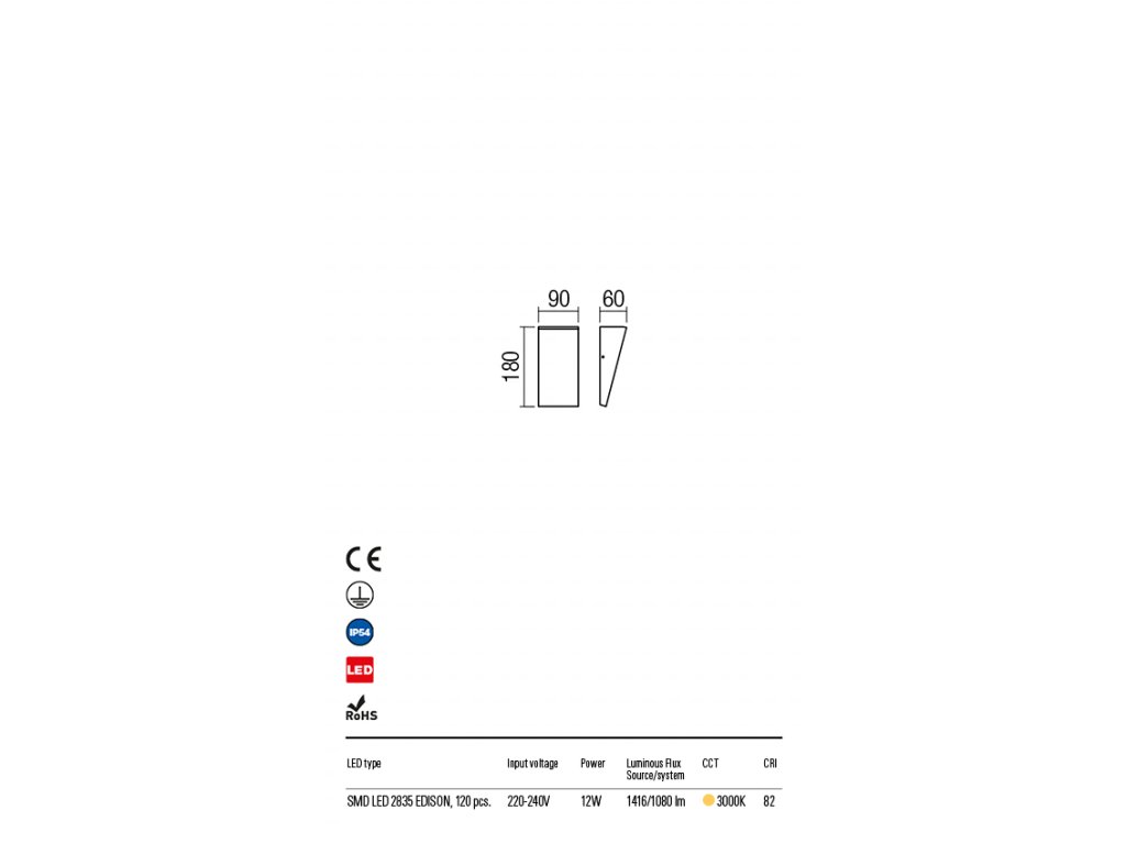 Nástenné vonkajšie svietidlo vybavené LED diódami SMD, hliníkové puzdro je elektrostaticky lakované v niekoľkých farbách, difúzor z opálového polykarbonátu. Svojim neobyčajným vzhľadom sa stane aj krásnou vonkajšou dekoráciou. LED zdroj aj transformátor sú súčasťou svietidla - nemožno vymeniť.Dodatočné parametre