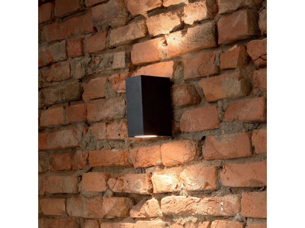 Vonkajšie nástenné svietidlo UP z hliníka, lakované práškovou farbou. Disponuje priehľadným difúzorom z pyrexového skla. Svietidlo UP AP2 je k dispozícii v antracitovom, bielom, kávovom, šedom alebo čiernom prevedení.