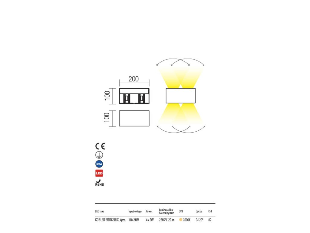 Vonkajšie nástenné svietidlo v modernom hranatom tvare v niekoľkých prevedeniach. Tento produkt z hliníkovej zliatiny je vhodný pre nepriame osvetlenie na fasády súkromných aj komerčných rezidencií. Iste bude nielen úsporným zdrojom svetla, ale aj štýlovou a zaujímavou ozdobou na stenách budov aj v interiéri. Vo svietidle je možné dvoma výklopnými plôškami regulovať vyžarovací uhol svetla dole aj hore. Integrované LED zdroje vydávajú jemné svetlo. LED zdroje COB a transformátor sú súčasťou výrobku sa nedajú vymeniť.Dodatočné parametre