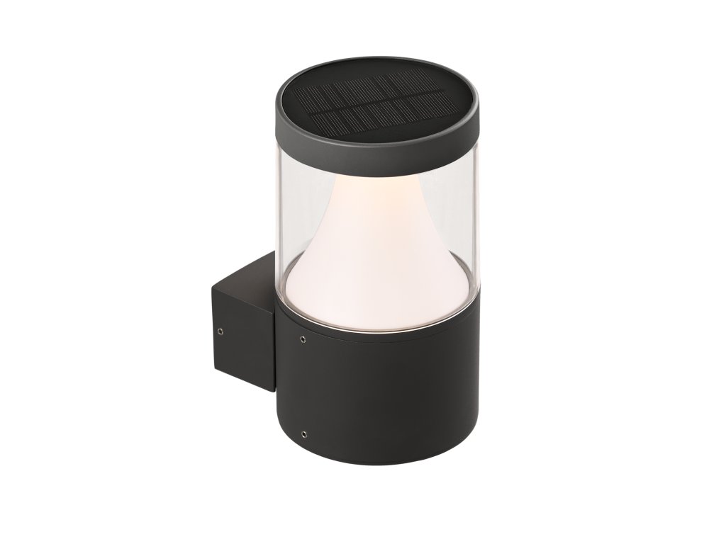 Vonkajšie nástenné solárne LED svietidlo BRISK v tvare valca s vysokým stupňom krytia IP65.