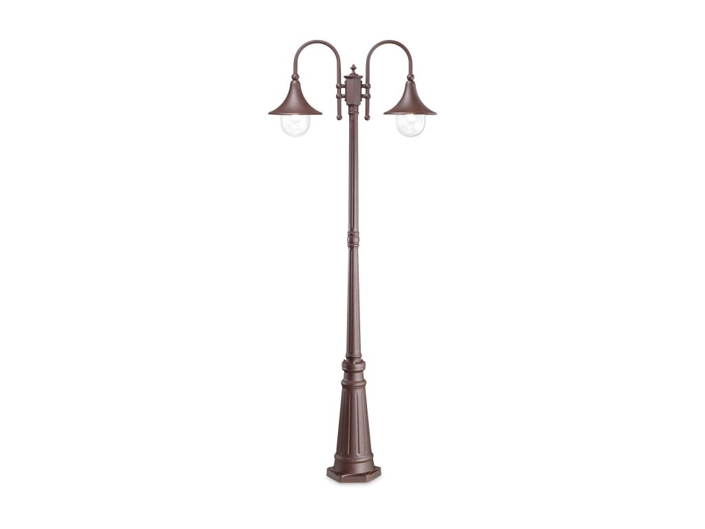 Stĺpové svietidlo Cima PT2 z kolekcie vonkajšieho osvetlenia Ideal Lux v klasickom prevedení s celkovou výškou 216 cm so zvonovitým tvarom difúzorov s priemerom 25 cm je typickým osvetlením pre mestské parky a zelene. Bytelná základňa má priemer 23 cm. Svietidlo je vyrobené z liateho hliníka s povrchovou úpravou antickej čiernej, teda čierny podklad so zlatou patinou. Dve oblúkovité ramená sú umiestnené v hornej časti oboch difúzorov, ktoré sú doplnené o číre akrylové kryty a osadené päticou E27 s maximálnym príkonom 2 x 60W. Zdroje nie sú súčasťou balenia, odporúčame zvoliť LED filamentové žiarovky, ktoré podčiarknu vzhľad celého svietidla. Krytie IP43 je vhodné na montáž do exteriéru.Dodatočné parametre