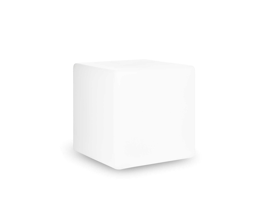 Netradičné dekoratívne vonkajšie svietidlo Luna PT1 v najväčšom prevedení v tvare kocky o veľkosti 50 cm. Difuzor je vyrobený z matného bieleho plastu, ktorý príjemne rozptyľuje svetlo. opatrená prívodným káblom so zástrčkou a montážnym príslušenstvom pre pripevnenie na zem.Dodatočné parametre