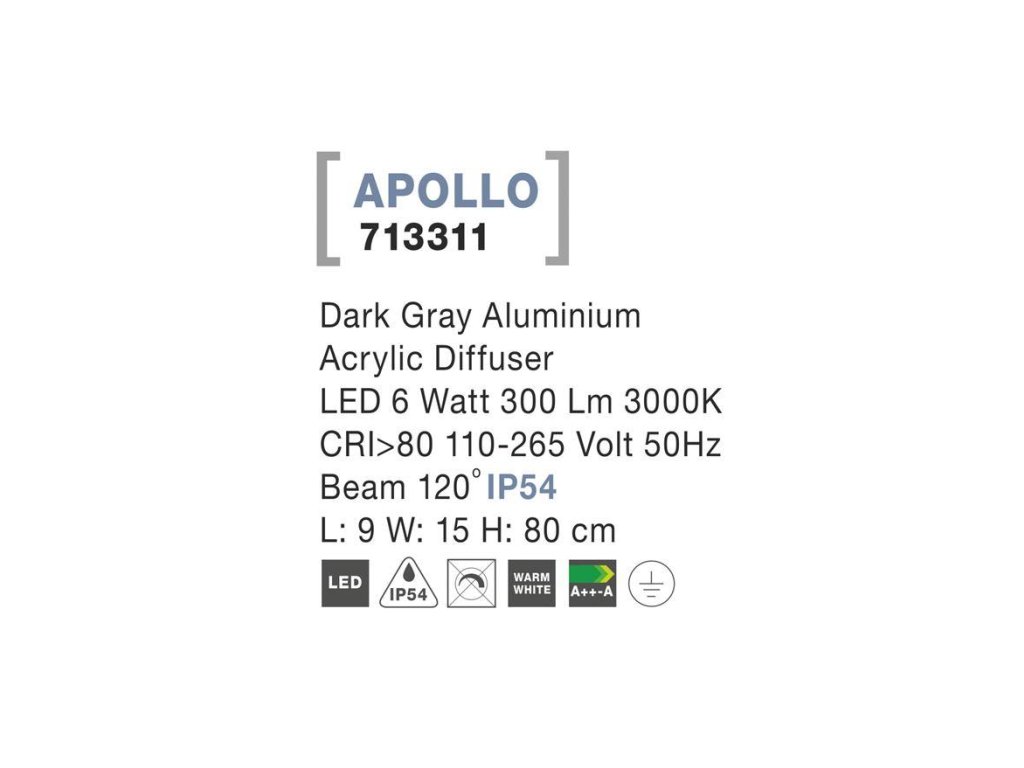 Vonkajšie stĺpikové svietidlo APOLLO tmavo šedý hliník akrylový difúzor LED 5W 3000K, IP54