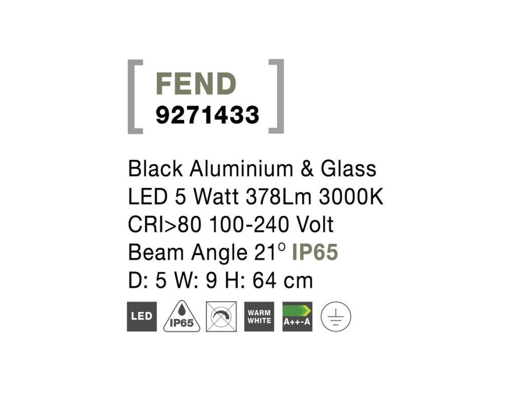 Vonkajšie stĺpikové svietidlo FEND čierny hliník a sklo LED 5W 3000K 21st. IP65