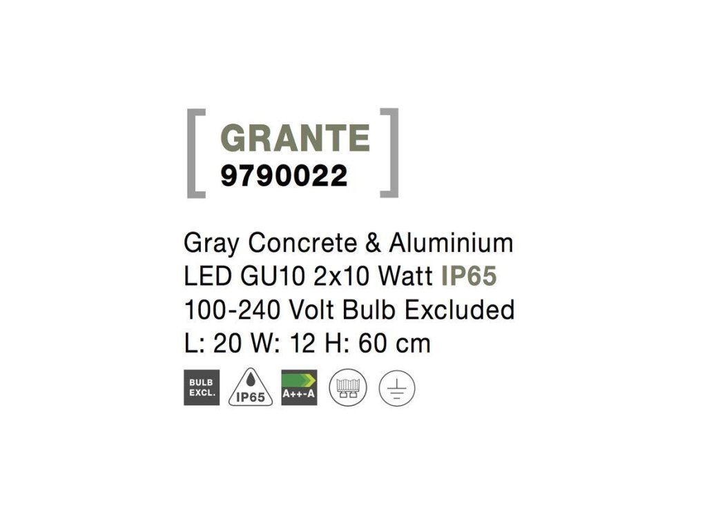 Vonkajšie stĺpikové svietidlo GRANTE sivý betón a hliník GU10 2x10W IP65