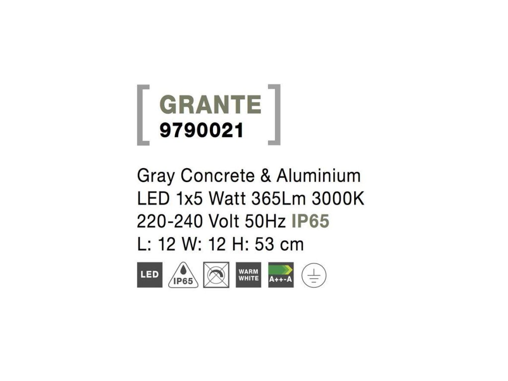 Vonkajšie stĺpikové svietidlo GRANTE sivý betón a hliník LED 5W 3000K IP65