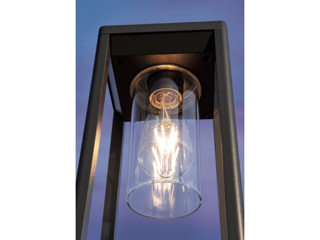 Vonkajšie stĺpcové svietidlo na žiarovku E27, telo z tlakovo liateho hliníka elektrostaticky lakované tmavo šedou alebo hnedou farbou, číry polykarbonátový difúzor.