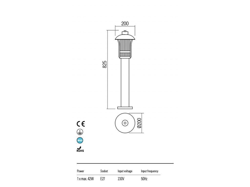 Vonkajšie stĺpikové svietidlo je vyrobené z kovu so skleneným tienidlom. Na tienidle sú ako dekorácia sklenené pruhy, ktoré ozvláštňujú vzhľad svietidla. Svietidlo sa tak stáva jedinečným a unikátnym kúskom. Používajte LED zdroj s päticou E27 - nie je súčasťou balenia.Dodatočné parametre