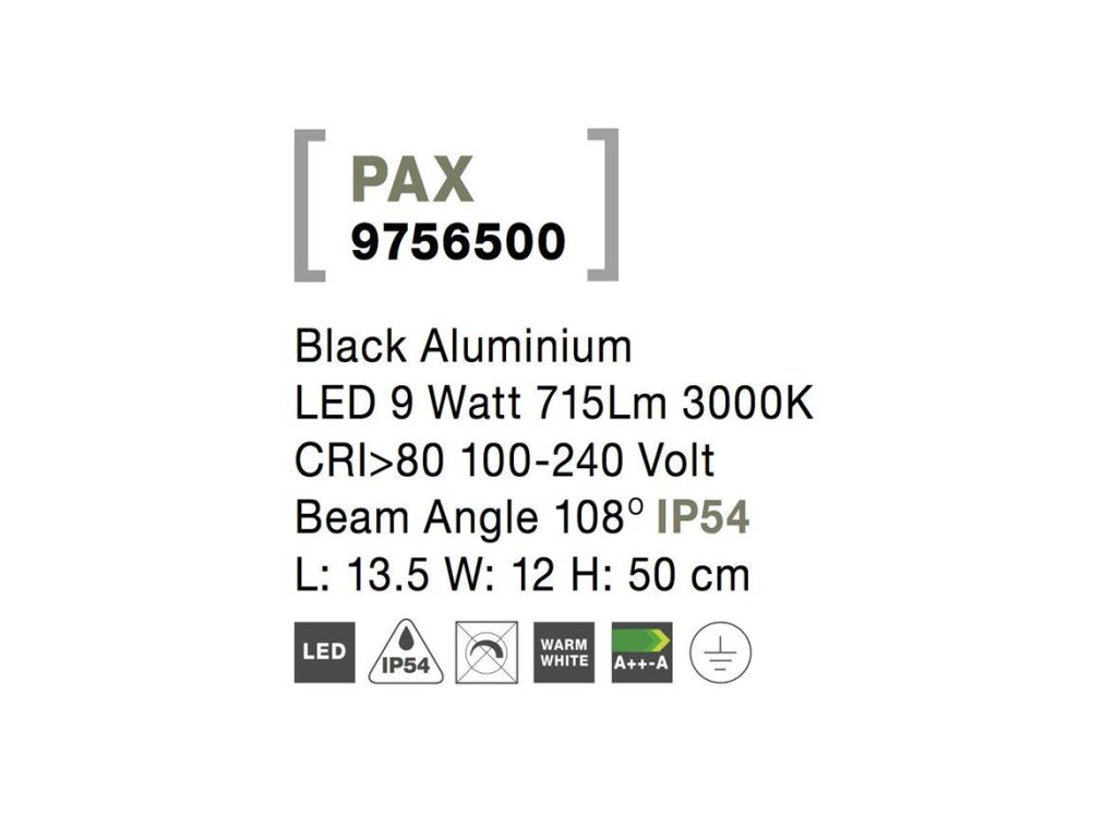 Vonkajšie stĺpikové svietidlo PAX čierny hliník, 50cm, LED 9W 3000K, IP54