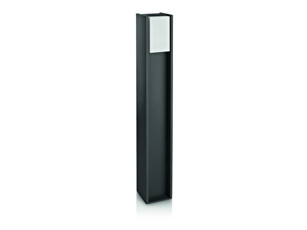 Vonkajšie stĺpikové svietidlo Bridge s výškou 80 cm. Svietidlo je vyrobené z liateho hliníka s antracitovou povrchovou úpravou. Vďaka umiestneniu difúzora svetlo vyžaruje dvoma smermi. Svietidlo má jednoduchý moderný design. Vďaka vysokému stupňu krytia IP44 je vhodné ako vonkajšie osvetlenie, svietidlo je vhodné pre osvetlenie prístupových a príjazdových ciest k domu alebo v záhrade. Difúzor z bieleho plastu s päticou E27 pre žiarovku s maximálnym príkonom 1 x 42 W (zdroj nie je súčasťou balenia). Celkové rozmery svietidla 80,2 x 12,1 x 12,1 cm.