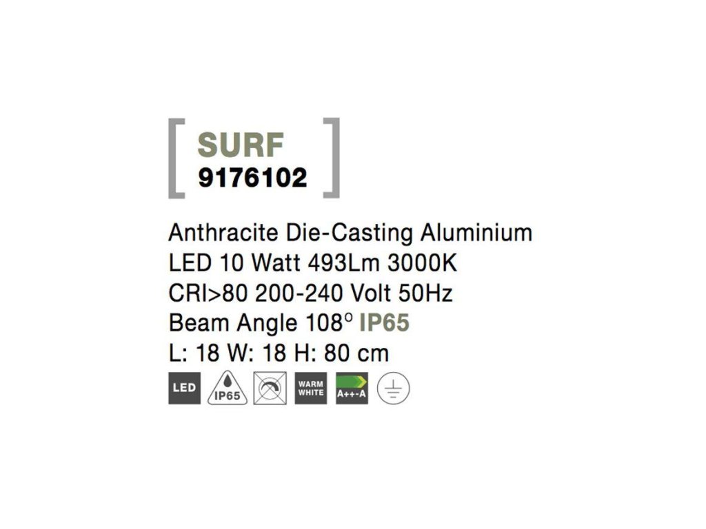 Vonkajšie stĺpikové svietidlo SURF, 80cm, LED 3000K 108st. IP65