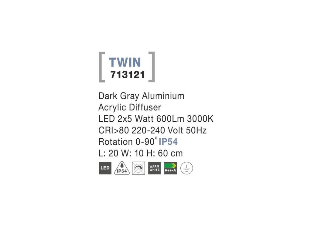 Vonkajšie stĺpikové svietidlo TWIN, LED 2x5W 3000K rotačné 0-90st.
