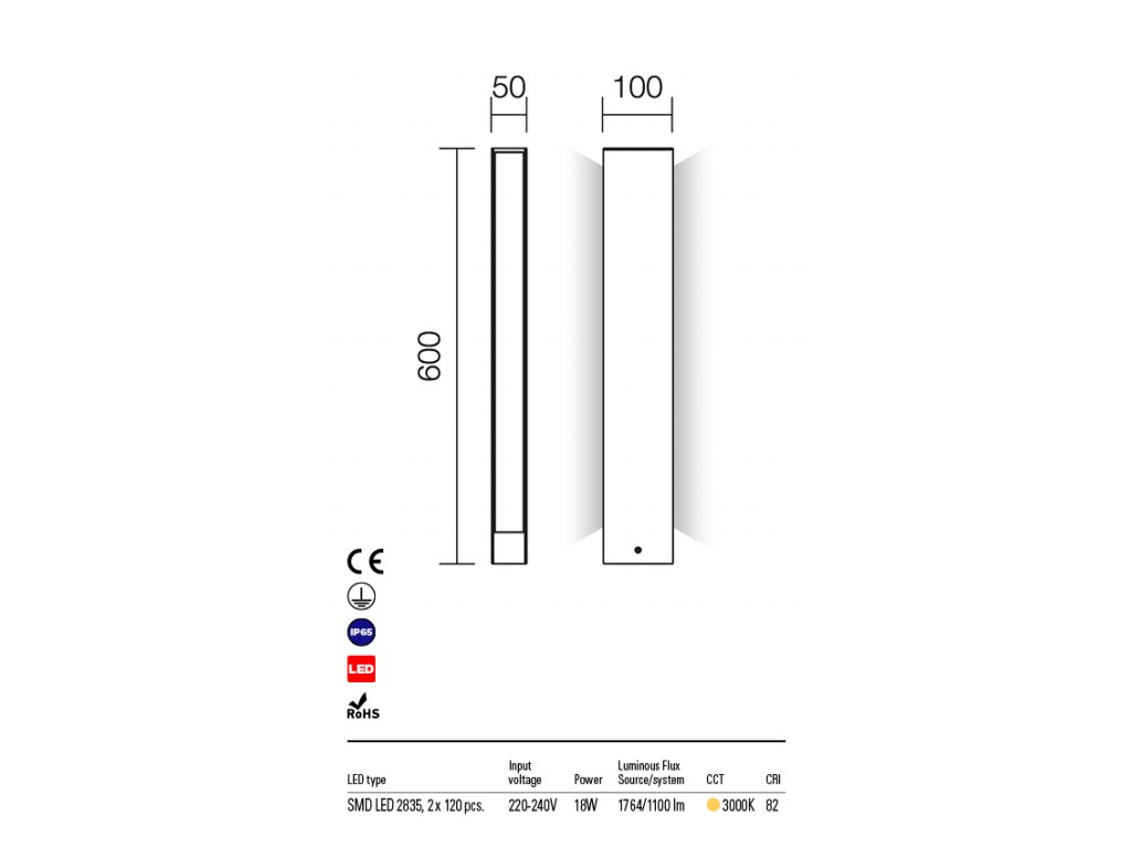 Vonkajšie stĺpikové svietidlo s dvojitým rozptylom svetla svetla. Stane sa aj krásnou dekoráciou vo Vašich záhradách. LED zdroj aj transformátor sú súčasťou balenia - nemožno vymeniť.Dodatočné parametre