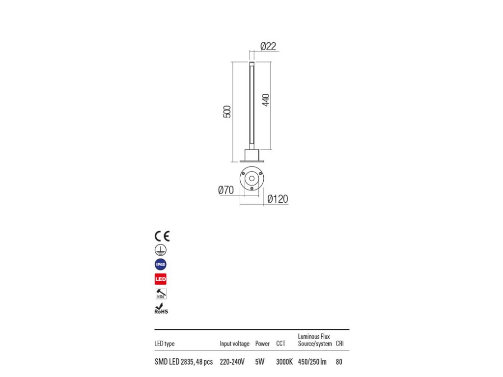 Vonkajšie stĺpikové sviedlo SMD LED vyrobené z hliníkového odliatku s polykarbonátovým difúzerom.Dodatočné parametre
